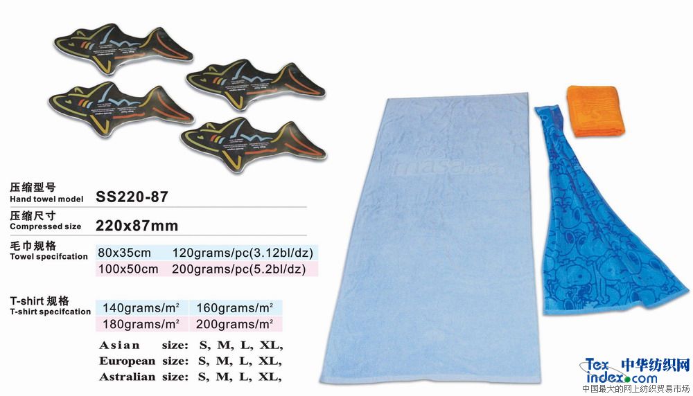 高級環(huán)保壓縮毛巾是二十一世紀的高科技成果、采用100%純棉經(jīng)高溫壓處理而成的新一代產(chǎn)品。放入水中浸片刻即可張開(kāi)使用。本產(chǎn)品新奇獨特,干凈衛生,產(chǎn)品企業(yè)形象宣傳極具效力。廣泛用于廣告宣傳界、酒店、旅游公司等。