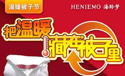2013-11-192013年11月20日—12月08日,海聆夢(mèng)家紡將于南京市集慶路31號、解放路101號海聆夢(mèng)家紡專(zhuān)賣(mài)店舉行第一屆被子節活動(dòng)。海聆夢(mèng)(heniemo)家紡是江蘇海聆夢(mèng)紡織品集團打造的健康美居家紡品牌,集研發(fā)、設計、生產(chǎn)、銷(xiāo)售于一體。是國內較早涉足家用紡織品行業(yè)的企業(yè)之一,并形成自己獨特風(fēng)格的集團化家紡...[繼續閱讀] -