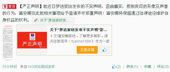 富安娜官方就夢(mèng)潔"假新聞"事件發(fā)嚴正聲明